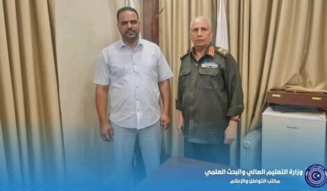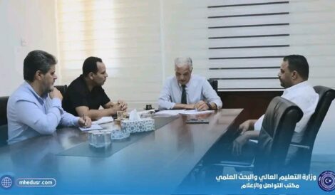 عقد صباح اليوم الثلاثاء، بمقر وزارة التعليم العالي والبحث العلمي، اجتماع تشاوري بين مدير إدارة تنمية وتطوير الموارد البشرية، د. أكرم غيضان، والخبير في مجال التدريب، أ. خالد المسلاتي.